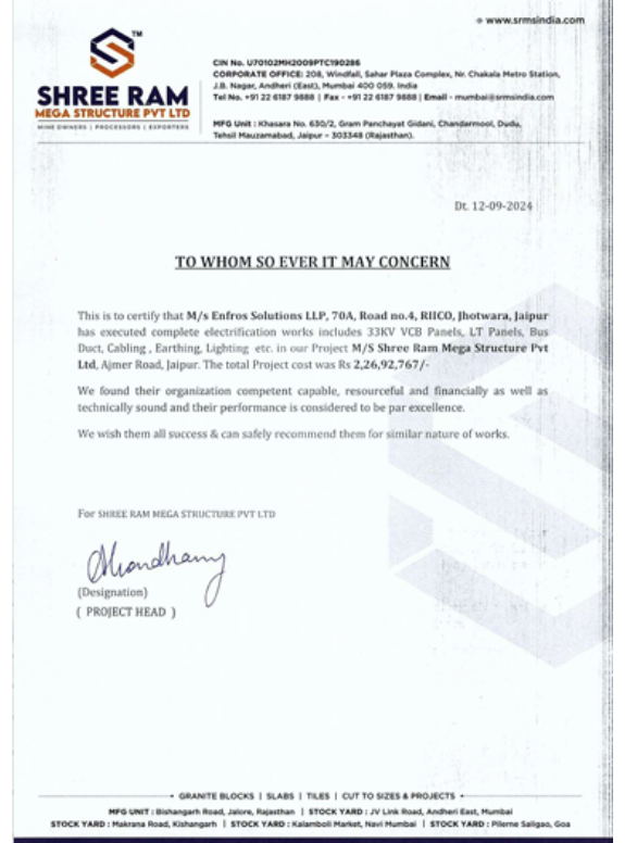 Enerlec is a Leading electrical panel manufacturer, providing solution from designing to commissioning. Turn key Projects Execution of Electrical and Automation projects with consultancy, design, supply erection, installation testing and commissioning: Power Control Centers Auto Mains Failure Meter Boards L.T. Bus Ducts/Rising Mains Feeder Pillars Control Desks Motor Control Centers Power Distribution Boards APFC Panels PLC Based Auto Synchronizing Panels Soft Starter Panels AC/DC Drive Panels 11KV/33KV VCB Panels